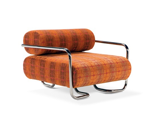 Swosh armchair from Italian manufacturer Adrenalina. Made in a modern style. Legs and armrests are made of metal tubes. Seat and round back are covered with textiles. The filler is not deformable polyurethane foam. Additionally, you can buy a sofa of similar design.