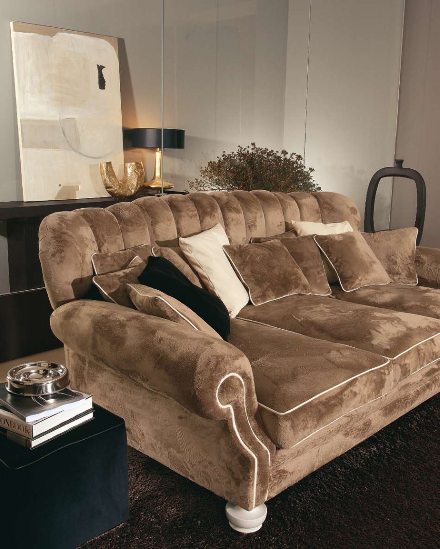 Triple XL JACQUELINE sofa from Italian manufacturer MOBILIDEA. Sofa with low backrest and upholstered armrests is designed in the art Deco style. The company offers two types of upholstery and fine fabrics or leather. The sofa legs are made of wood. The company offers an interesting option of comfortable sofa. The perfect choice for a modern living room. Thanks to beige shade it will easy fit in modern interior living room.