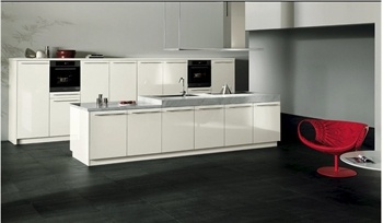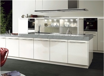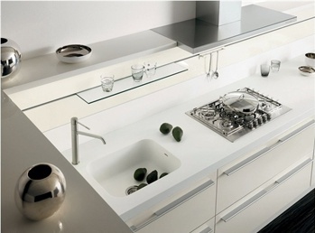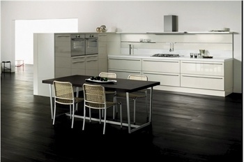 Set for the kitchen Sintesi from the Italian manufacturer Snaidero. Fronts lacquered from a range of campaigns or solid walnut. Work surface made of natural stone/solid wood or chipboard. Set in a contemporary style. Colors: white, steel.