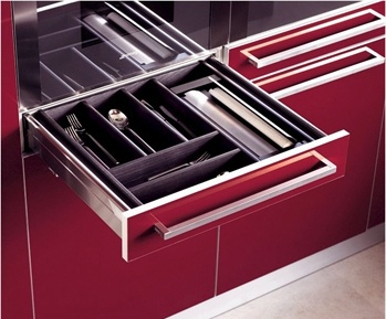 Set for the kitchen Sintesi from the Italian manufacturer Snaidero. Fronts lacquered from a range of campaign or tinted walnut. Work surface made of natural stone/solid wood or chipboard. Set in a contemporary style. Colors: Burgundy, steel.