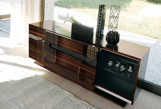 A chest of drawers from Italian manufacturer Alf. The case is made from solid oak. The surface is covered with a glossy varnish. Sliding sash. Inside there are shelves and storage units. Modern, spacious and comfortable model will decorate your interior.