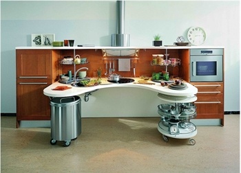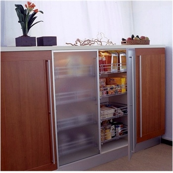 Set for the kitchen Skyline from the Italian manufacturer Snaidero. Fronts lacquered from a range of campaign or tinted wood. Work surface made of natural stone/solid wood or chipboard. Kitchen with built-in illumination. Set in a contemporary style. Colors: natural wood color, white, beige.