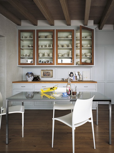 Dining table from Italian manufacturer Desalto. The frame is made of metal. Finishing varnish from the company portfolio. Table top - durable and transparent glass. The model will perfectly complement the modern interior of the dining room.