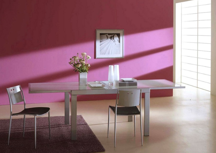 The sliding Sky dining table from Italian manufacturer Bontempi Casa. Table steel frame with glass top. The model of rectangular/square shape. Perfect choice for modern interiors. Colors: transparent, white, steel.
