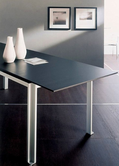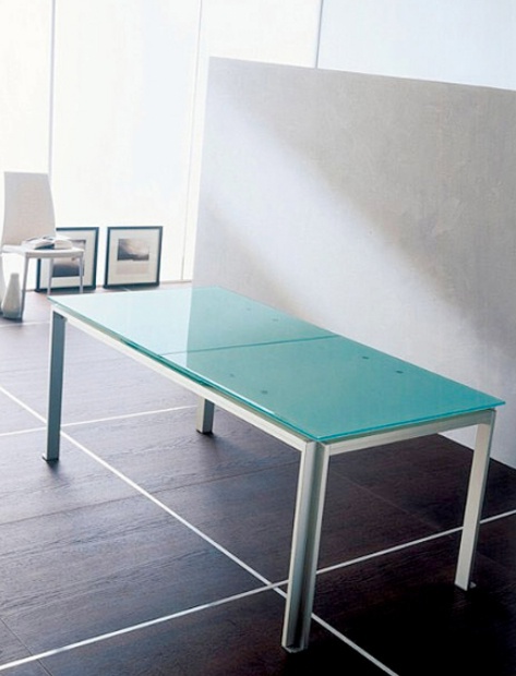 Dining table sliding Ten from Italian manufacturer Bontempi Casa. The frame is made from aluminium, the table top is glass. The model is rectangular. A great choice for modern interiors. Colors: white, blue, steel.