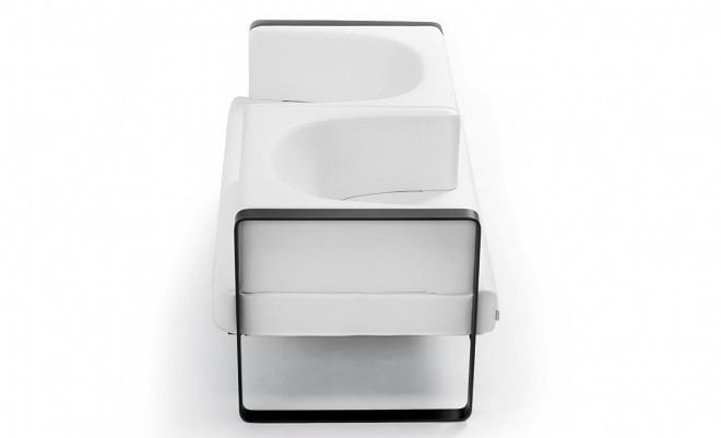 Sofa Ianus, from the Italian manufacturer Felicerossi. The frame is made of wood. Upholstered in textile or leather from the company portfolio. The legs become the arms - metal. Color scheme - white.The model is made in modern style.