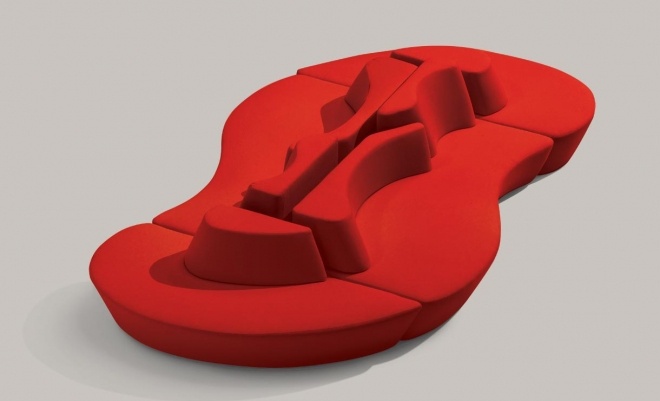 Mumble sofa from Italian manufacturer Felicerossi. The frame is made of wood. Upholstered in textile or leather from the company portfolio. Legs - metal. Colors - red. The sofa differs post-modernist design. The model is made in modern style.