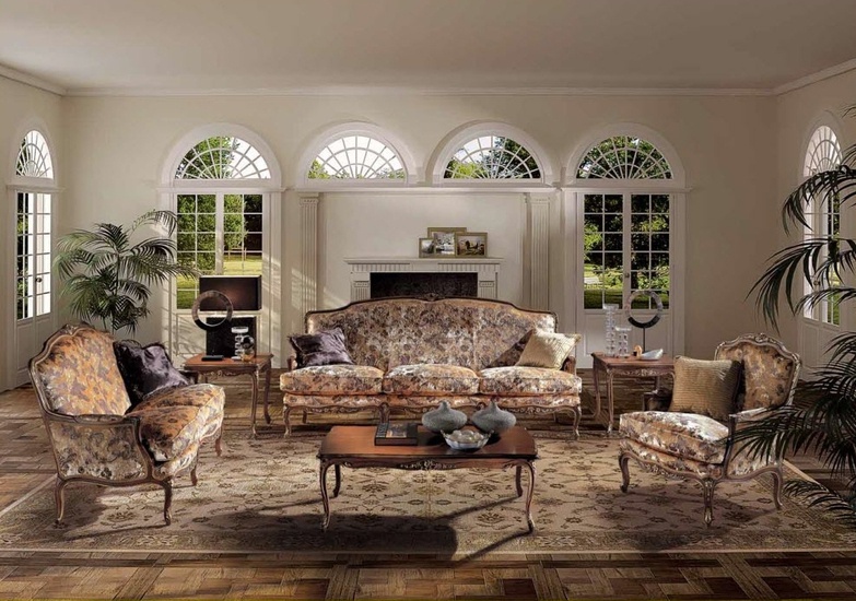 Balzac sofa set from the Italian manufacturer Angelo Cappellini. Made in the classic style. Consists of two sofas, armchairs and coffee table. The frame is made from solid. Offers a glossy finish or a matte varnish. Upholstery textile. Color and texture of your choice from the collection of the company. The seat cushion is removable. The surface is decorated with hand-carved. In addition offers decorative pillows.
