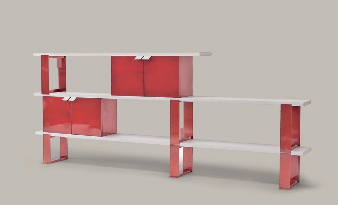 The Speed rack, from the Italian manufacturer Europeo. The frame is made from solid wood. Finishing varnish from the assortment of the company. Colors - white and red. The rack is made with open and closed sections. The model is perfectly suited to complement your modern interior.