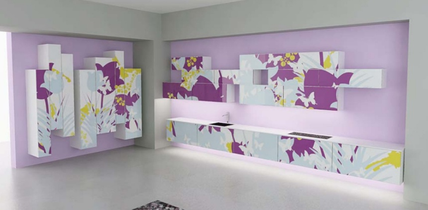 Twin kitchen by Italian manufacturer Bontempi Casa. The frame is made of MDF, table top glass. The furniture is made in modern style. Colours in stock.