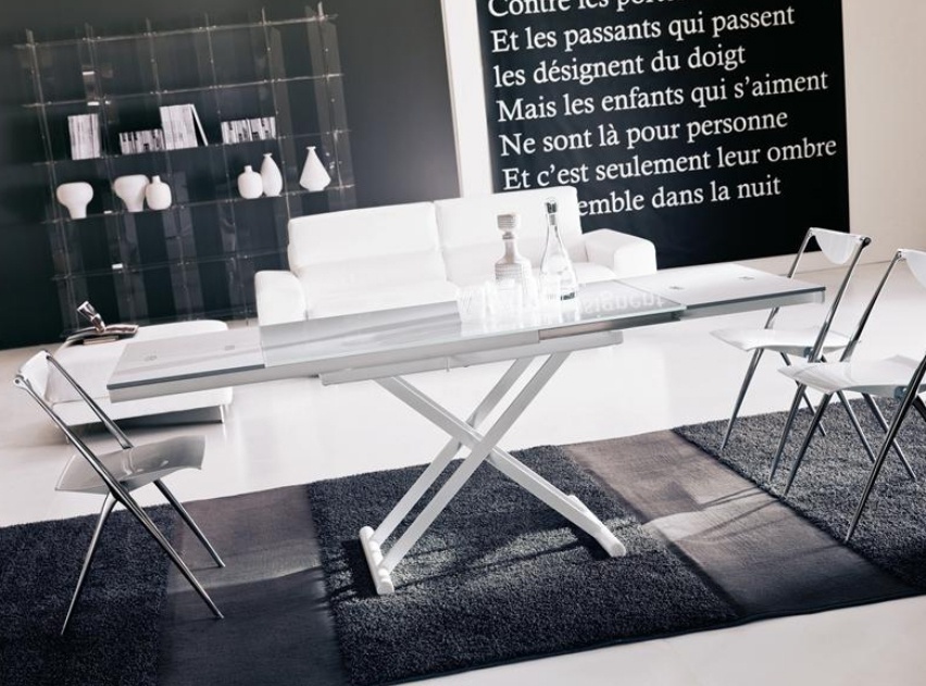 Dining table sliding on steel frame with glass top Ugo, Bontempi Casa