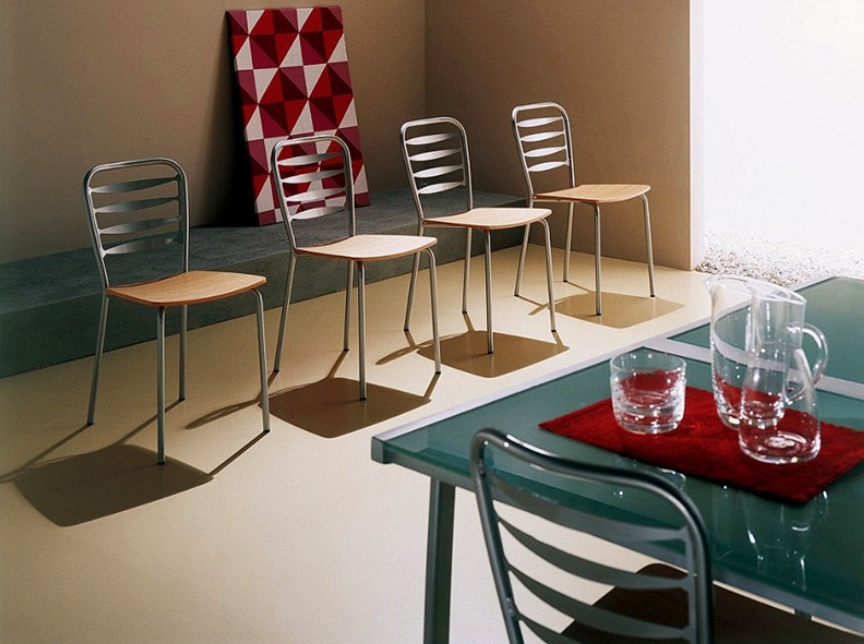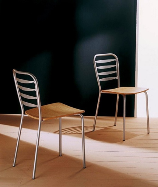 Chair on a metal frame with seat in wood Vera, Bontempi Casa