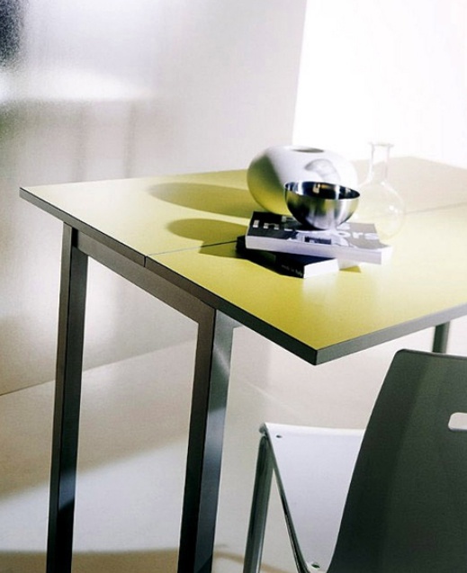 The Zip sliding dining table from Italian manufacturer Bontempi Casa. The frame is made of metal. The model is rectangular. The product is designed for interior in modern style. Color range: red, yellow, steel.