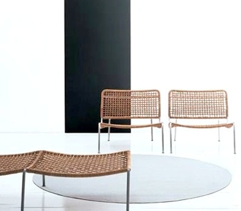 The Frog chair from the Italian manufacturer Living Divani. The frame is made of chrome steel, backrest and seat - weaving leather. A lovely choice for street furniture in a contemporary style. Product color beige.