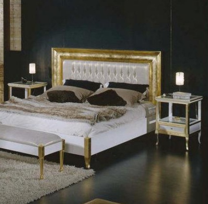 Bedside table 6001/25 from the Italian manufacturer BTC. The frame is made from solid wood, top glass. The model will certainly decorate a bedroom in a classic style. Colors: white, Golden.
