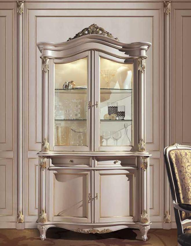 Showcase from Italian manufacturer Angelo Cappellini. Body and legs made of solid wood. The surface is treated with lacquer. Colours from the collection company. Sash glazed and deaf. Accessories metal. Augmented design decorative lighting. The model is made in classic style.