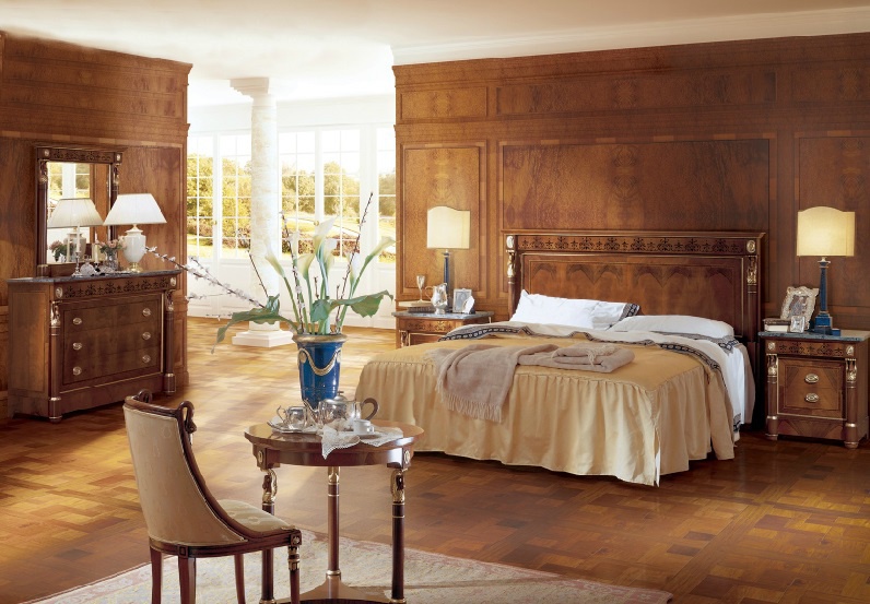 Double bed Paganini from the Italian manufacturer Angelo Cappellini. The frame and legs are made of solid wood. The finish offers a glossy varnish. The feature gives design high headboard. The surface is decorated with a decorative carving handmade.
