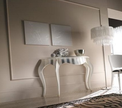 The console 706/G from the Italian manufacturer BTC. The frame is made from solid wood, the surface is treated with varnish from the range of the campaign. The model will surely embellish the interior in the art Deco style. Colors: white, silver, black.