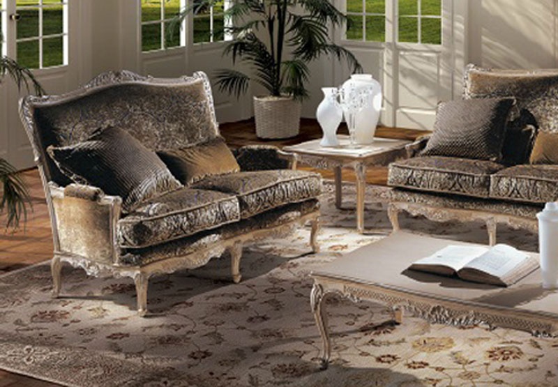 Double sofa Aleardi from the Italian manufacturer Angelo Cappellini. The frame and legs are made of solid wood. Finish option to choose from a collection company. Upholstery - textiles. The seat cushion is removable. The armrests are complemented with soft pads. Decoration is the decorative carving handmade.