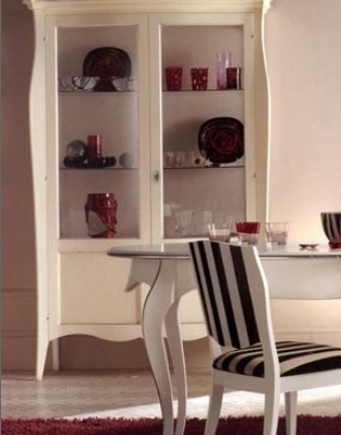 Showcase 716/G from the Italian manufacturer BTC. The frame is made from solid wood, doors - glass. The surface is treated with varnish from the range of the campaign. The doors are hinged. The model is intended for interior in classic style. Colors: white, black.