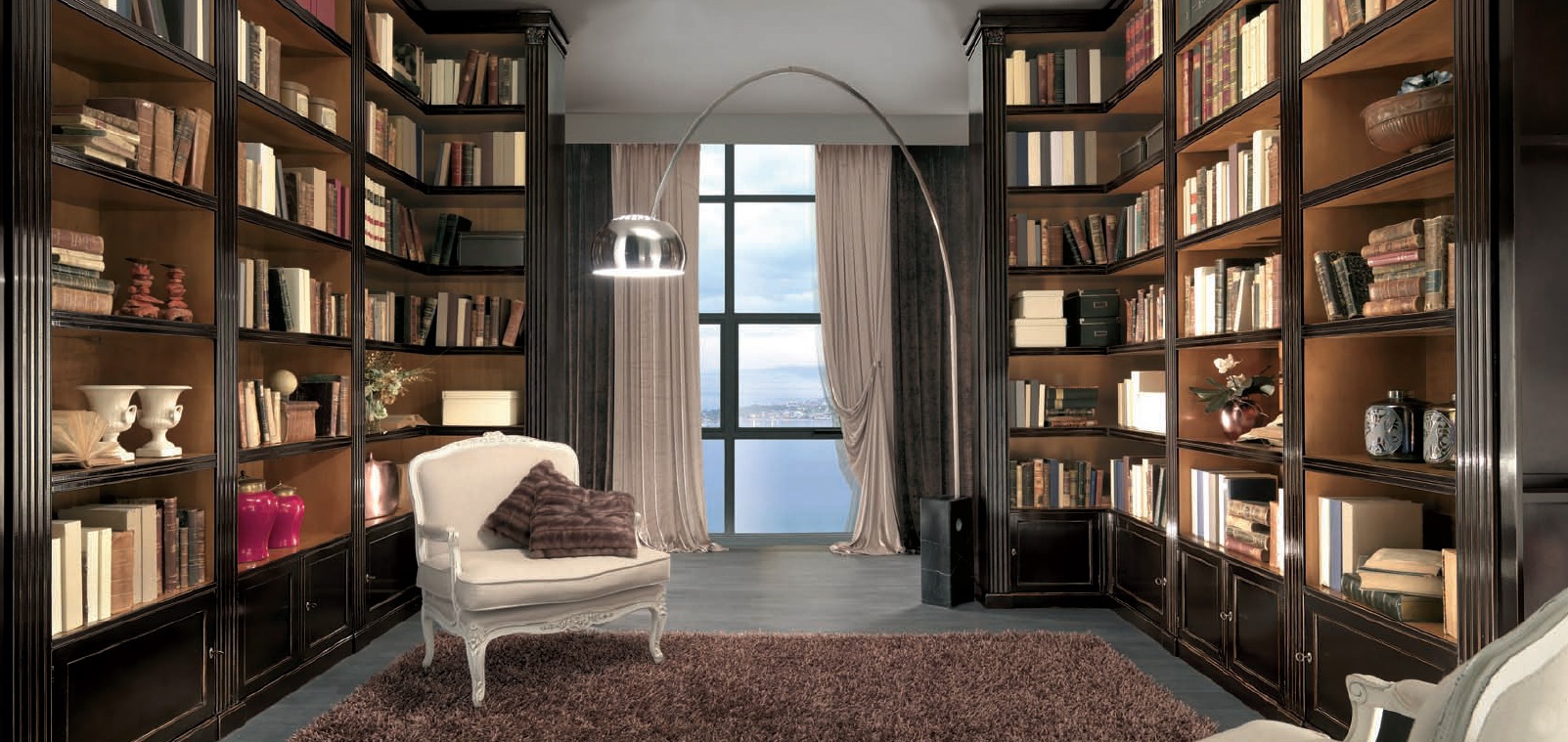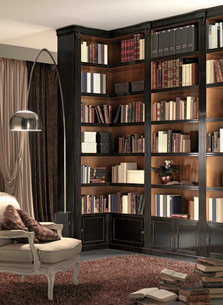 Library from the Italian manufacturer Bizzotto. The design is executed in classical style. The frame is made of solid wood, swing door, wooden. Provided the modules are opened for books. Colours in stock. Great solution for the interior of the library.
