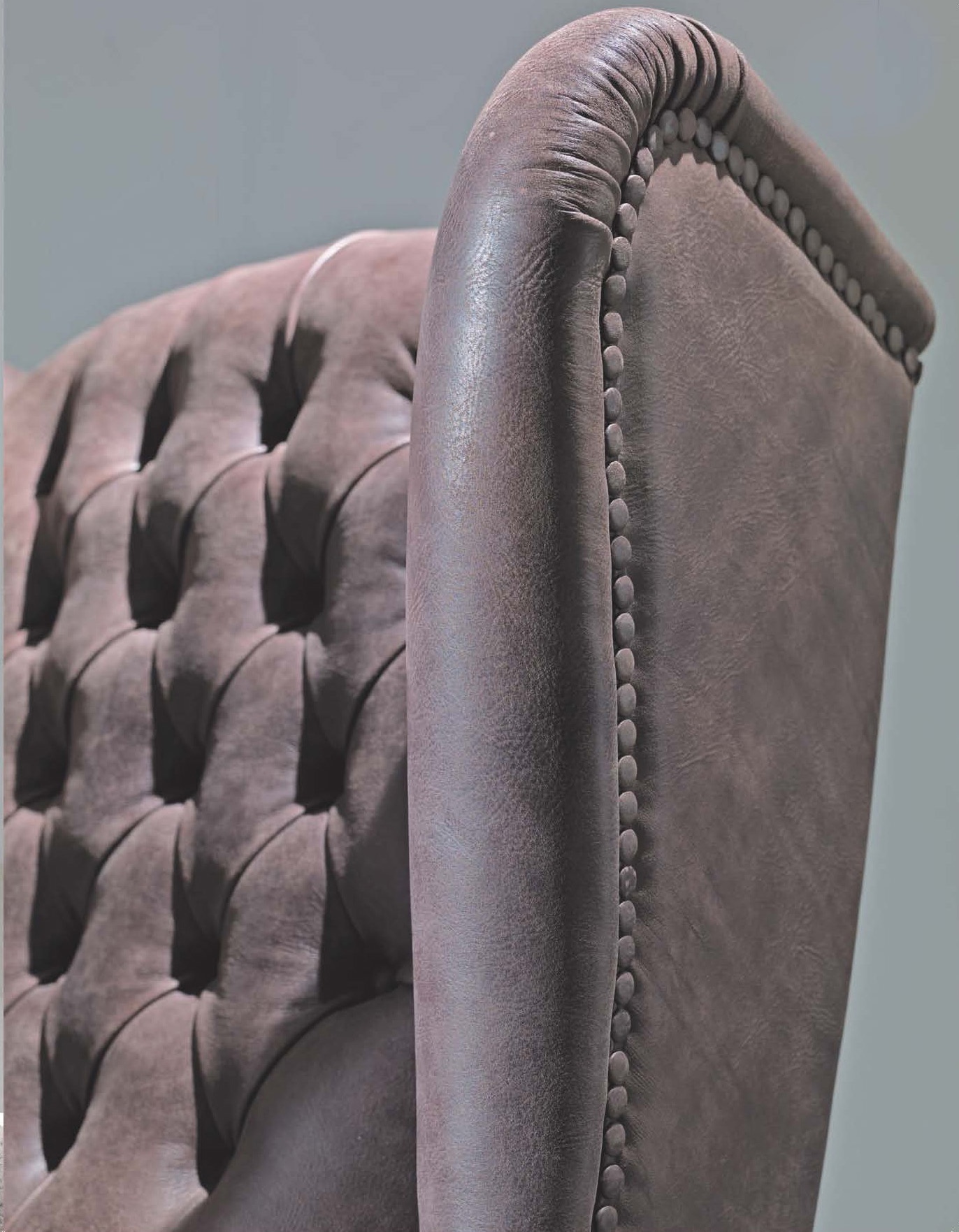 Maxime armchair from Italian manufacturer Asnaghi (Made in Italy). The frame is hidden. Low legs are made of solid wood. Leather or fabric upholstery from the collection of the company. Seat cushion is removable. The filler is not deformable polyurethane foam. The back is decorated with ornamental stitch-Capito.