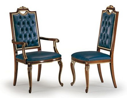 A chair from the Italian manufacturer Bakokko. Model with a high back. A version with or without armrests. Material - solid wood. The finish offers a glossy lacquer and gilding. Upholstery leather to choose from a collection company. Decoration is a decorative thread and stitch-Capito.