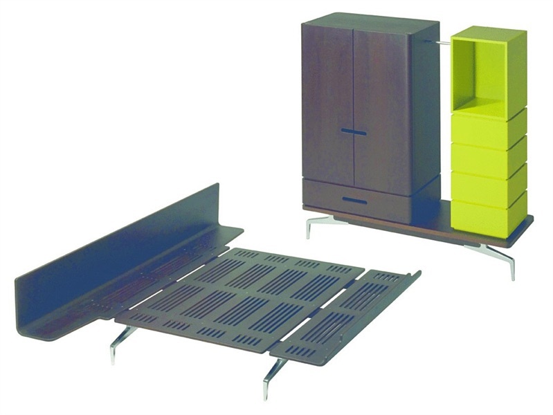 A bed with a body from solid maple and the legs are made of aluminum Legnoletto, Alias
