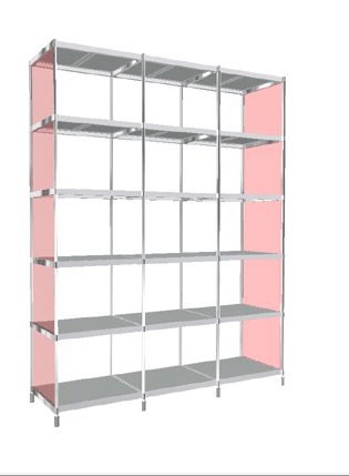 frame: aluminum shelves: metal cross bar: polymethylmethacrylate legs: metal |