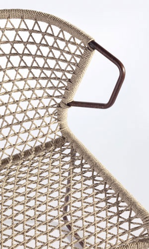 Armchair Vela/Corten from the Italian manufacturer Accademia. The frame is made of metal, wicker seat. The model is designed for modern interiors. Colours in stock.