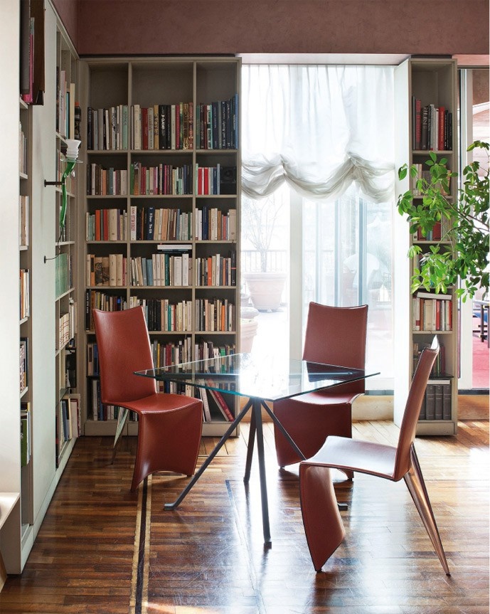 Chair with high back Ed Archer produced by the Italian factory Driade. The frame is made of steel, back stem - polished cast aluminum. Finish chair in two versions: black or brown leather. The model is executed in modern style. Designer chair for your dining room or living room.