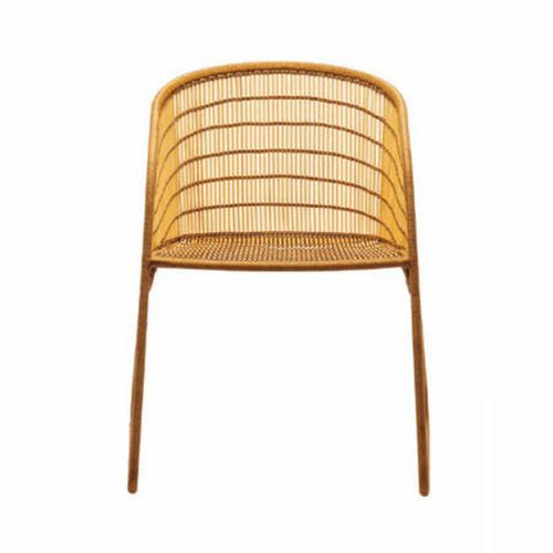 Chair Flo Easy Chair produced by the Italian factory Driade. Chair with low back rounded, passing into the armrests. Steel frame, seat, backrest and armrests of the wicker. Curved legs, decorative. The model is executed in modern style, available in brown tones. Great for living room, kitchen or summer terrace.