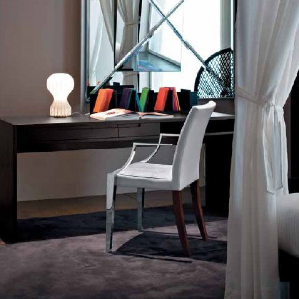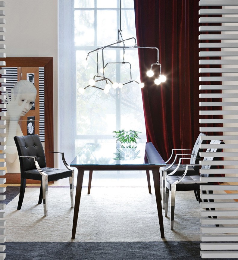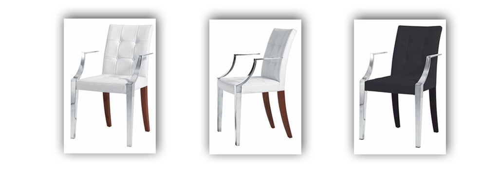 Monseigneur chair from the Italian manufacturer Driade. The frame is made of solid wood, front legs and armrests in stainless steel. Hind legs-the sabres decorative, made of solid mahogany. Upholstery leather, in black or white, decorated with stitch and furniture nails. The model is made in modern style. Great addition for interior living room or dining room.