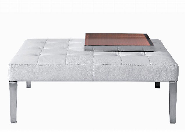 Square Monseigneur pouf from Italian manufacturer Driade. The frame and legs are made of stainless steel. The seat is soft, the filler is polyurethane foam. Upholstery leather, decorated with stitch and furniture nails. The model is presented in black and white, made in a modern style.