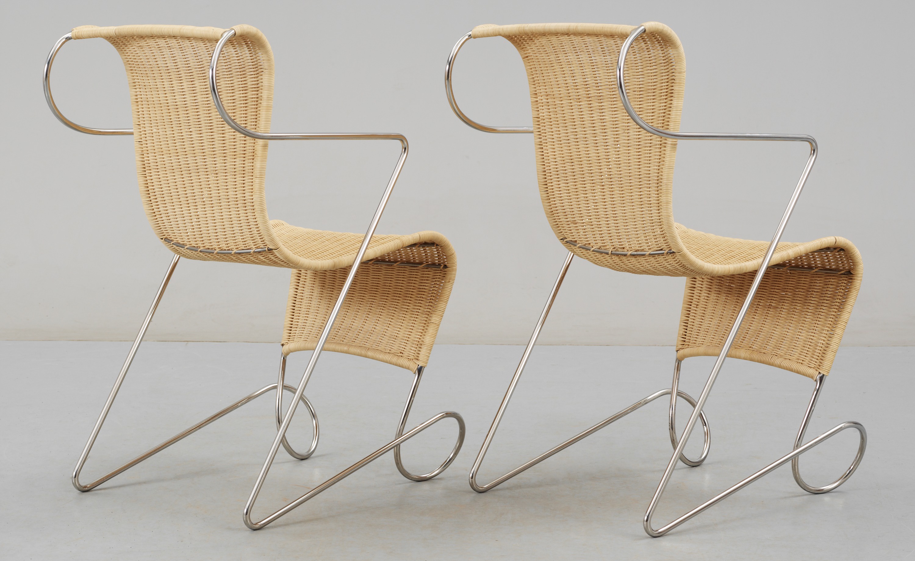 frame: stainless steel backrest, seat: cane |