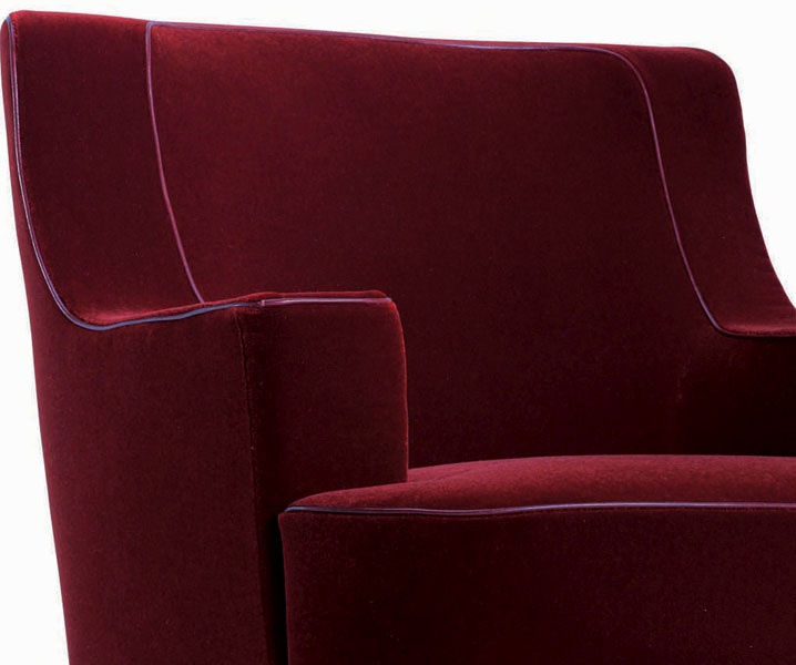 Meran chair from the Italian manufacturer Driade. The frame is made of wood, legs made of solid beech. Backrest, seat and armrests, soft filler - polyurethane foam. Upholstery velvet, Burgundy or black leather with white inserts. The product is designed in modern style. A great addition to your interior.