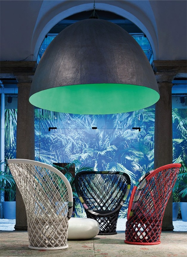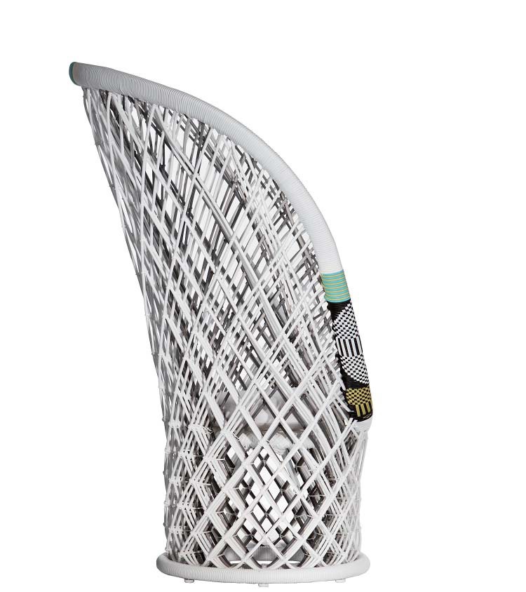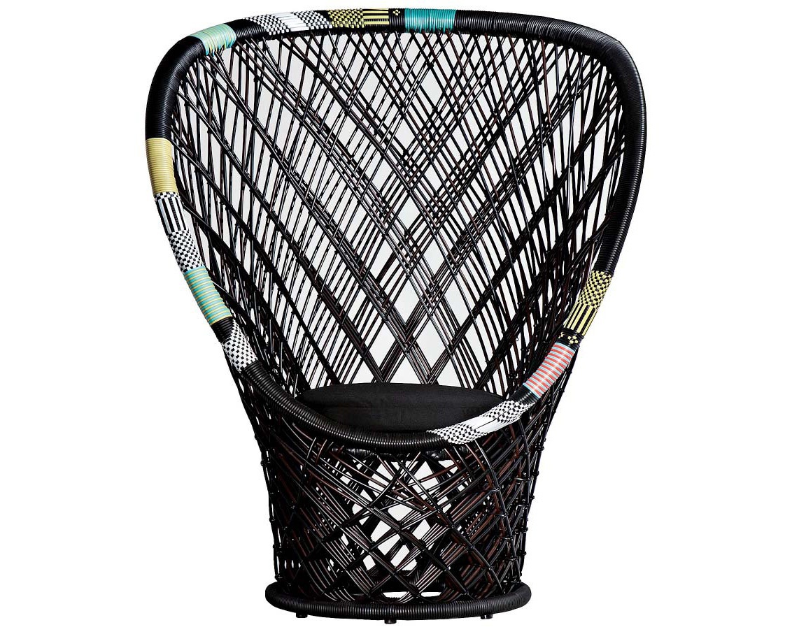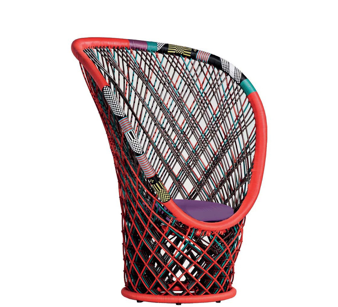 The Pavo Real Outdoor armchair from Italian manufacturer Driade. The frame is made of aluminum tubing. Wicker chair made of polypropylene in three colors: red, white and black. The seat is upholstered with leather or textiles. The product in a contemporary style will perfectly fit into the interior of your living room or on the summer terrace.