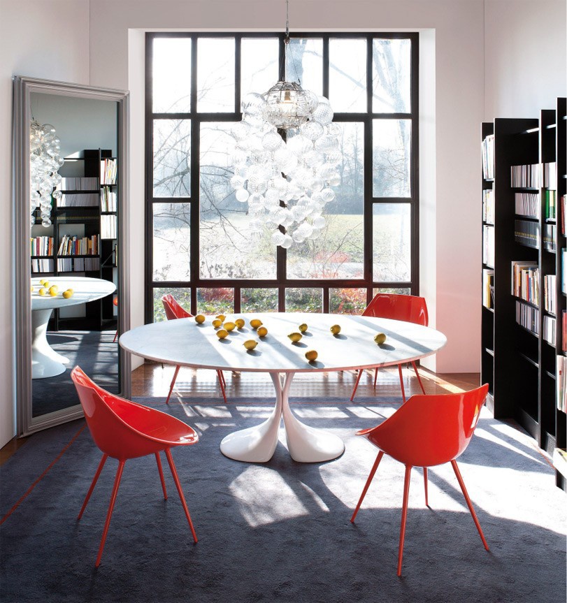Didymos dining table from the Italian manufacturer Driade. The oval table. The base is made of artificial stone, the original form. The table top is made in two sizes, made of marble or artificial stone, on the client's choice. The original model is very suitable for living room in modern style.