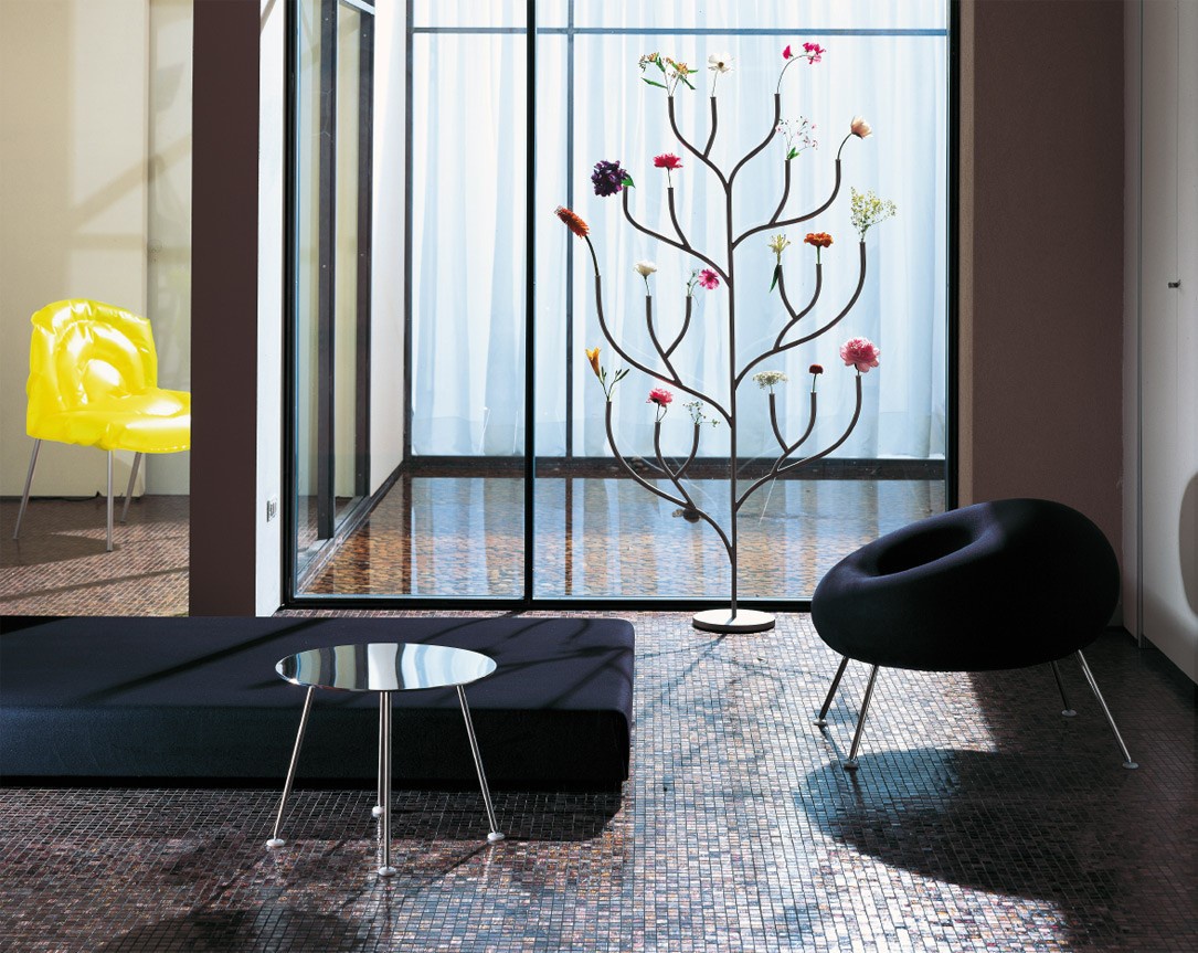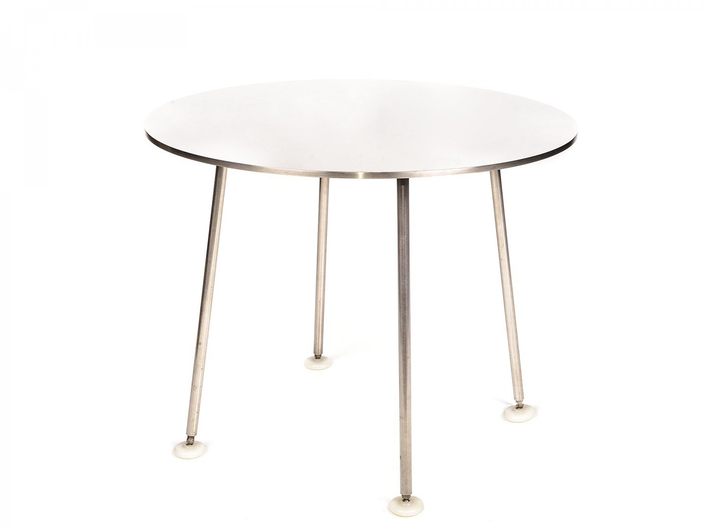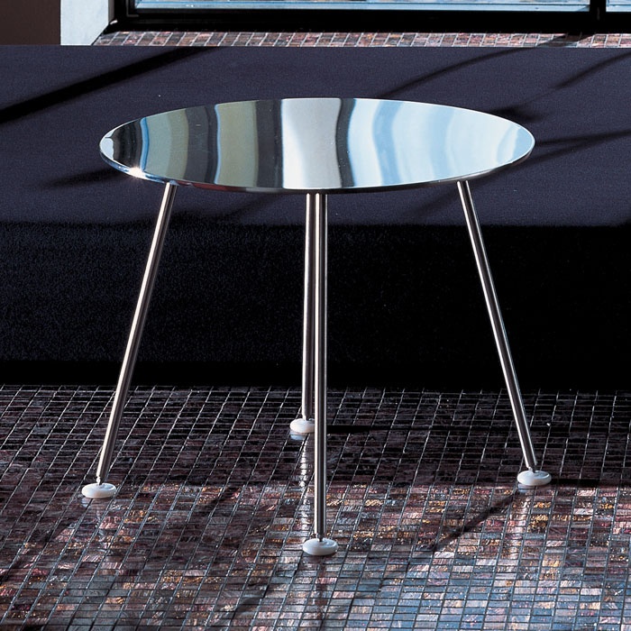 Little Picapica coffee table from the Italian manufacturer Driade. The legs are made of brushed stainless steel. Countertop round shape, made of stainless steel and polished to a mirror finish. The model is executed in modern style.