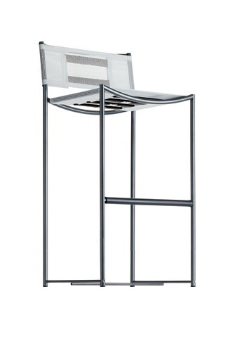 Outdoor bar stool from the Italian manufacturer Alias. The frame is made of steel, backrest and seat made of polyester. A model with a footrest. A lovely choice for modern interiors. Colours in stock.