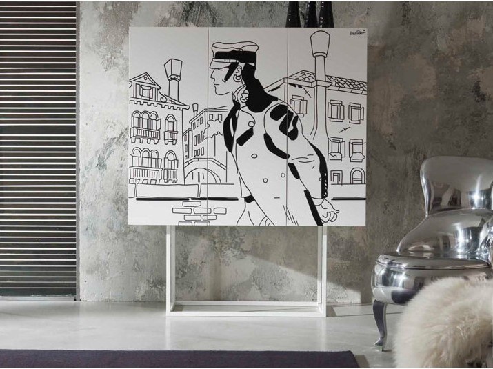 The wardrobe design from the Italian manufacturer Capo D' Opera. Presents a square Cabinet on high legs. The frame is made of metal and wood. The color offered in designer white with black comics. The perfect solution for modern interior.
