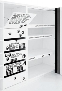 Wardrobe from the Italian manufacturer Capo D' Opera. Presents a model of a designer bookcase. The frame is made from solid wood and metal. The color offered in designer white with black comics. The perfect solution for modern interior.