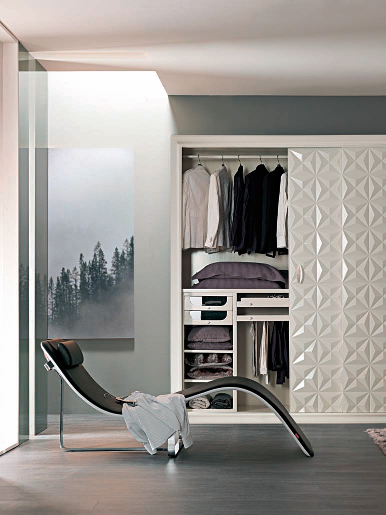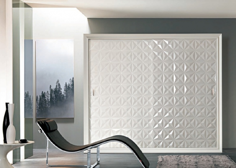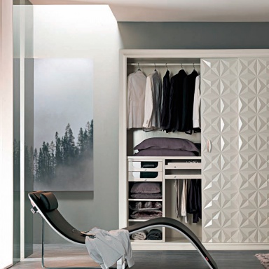 Wardrobe from the Italian manufacturer Bizzotto. Submitted to the Cabinet frame with two sliding doors. The door is decorated with a framed finish diamond, finish in white lacquer or a choice from the assortment. The interior provides hanging space for clothes, shelves and drawers. Perfectly complement modern interior of a dressing room or bedroom in the art Deco style.