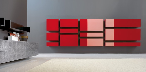 Storage system from the Italian manufacturer Capo D' Opera. The frame is made of wood. Proposed color of designer red and pink. The perfect solution for modern interior.
