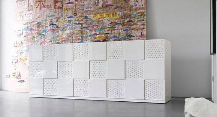 A chest of drawers from Italian manufacturer Capo D' Opera. The chest of drawers is designed for storing things. Color scheme from the designer in white. Elements is the checkerboard finish. The perfect solution for modern interior living room.