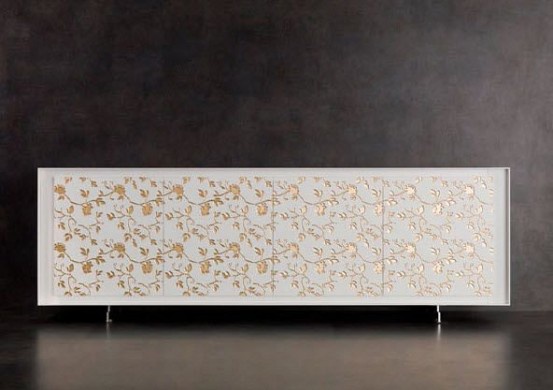 A chest of drawers from Italian manufacturer Capo D' Opera. A chest of drawers on small feet designed for storage. Color scheme from the designer in white with Golden ornaments. The perfect solution for modern interior living room.