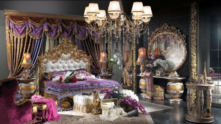 Headsets for bedrooms from Italian manufacturer Cappelletti. Includes double bed with high headboard, two bedside tables, a daybed, dressing table and stool. The rounded bedside tables with drawers. Handles of metal. Frames made of solid wood. Surface models are covered with varnish. The perfect solution for bedroom in classical style.