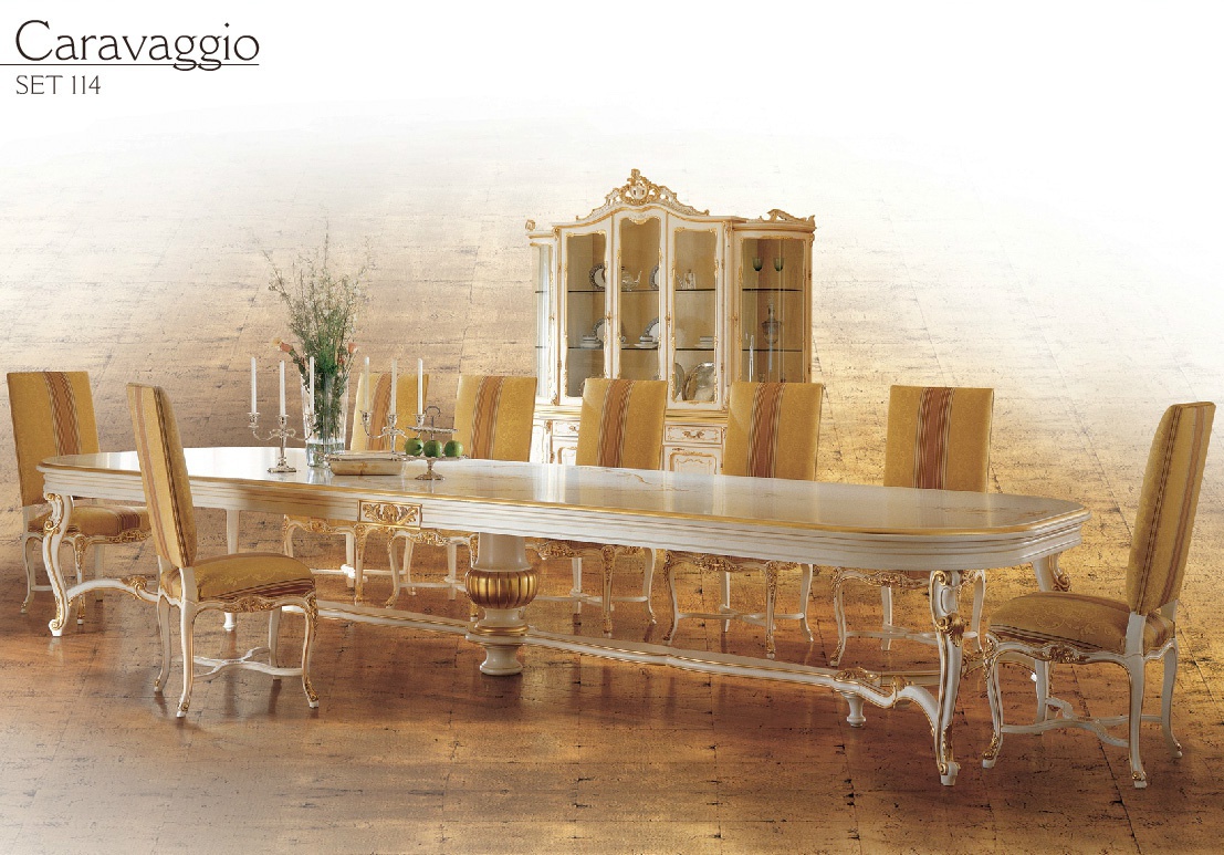 Showcase Caravaggio from the Italian manufacturer Angelo Cappellini. The frame is made from solid wood. Top doors and shelves glass. D?cor - gilding. Trim carved/distressed/varnish. The model will decorate the interior in the Baroque style. Color range: bright, white, Golden.