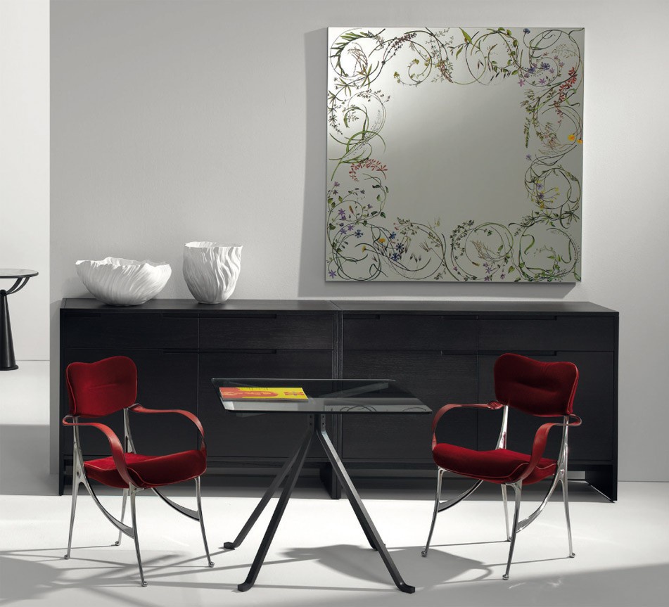 Wall mirror Egeso from the Italian manufacturer Driade. The model is square shaped, decorated with delicate floral print, printed on a template. Mirror in contemporary style will perfectly fit to your interior.
