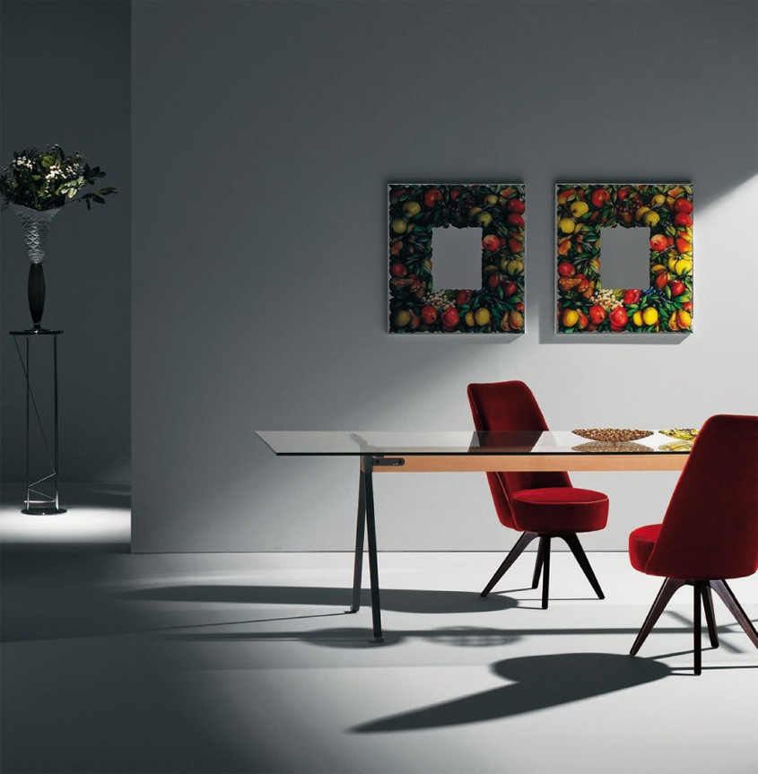 Rectangular wall mirror Eos produced by the Italian factory Driade. Most of the mirror surface is bright fruit print in a frame. The model is made in modern style. The mirror will perfectly decorate your kitchen or dining room.